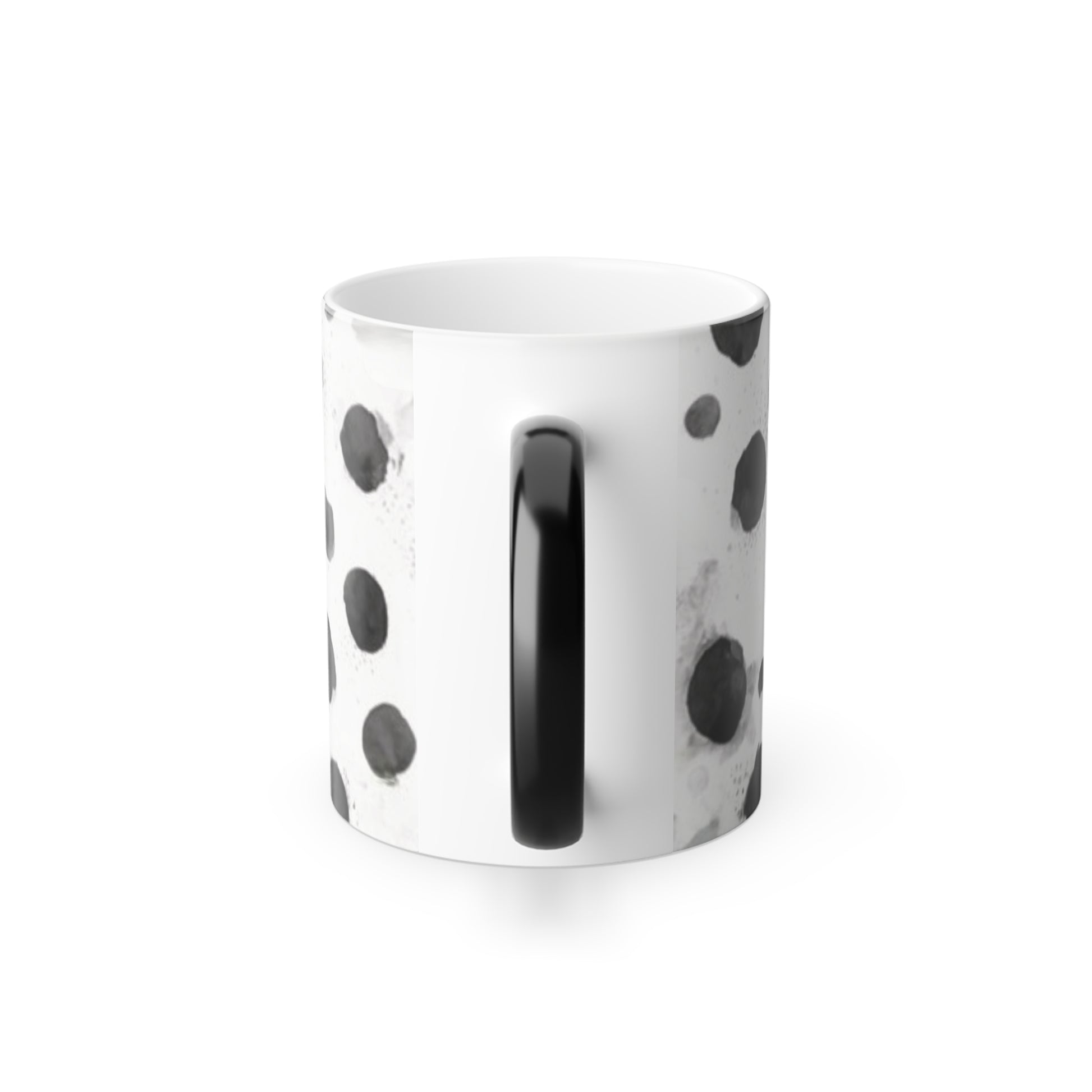 Stunning 11oz color-morphing ceramic mug with watercolor hand-painted–style black dots that intensify with hot drinks. Durable and comfortable to hold, it’s perfect for mindful coffee or tea breaks. Black exterior when cold, white interior, and microwave safe.